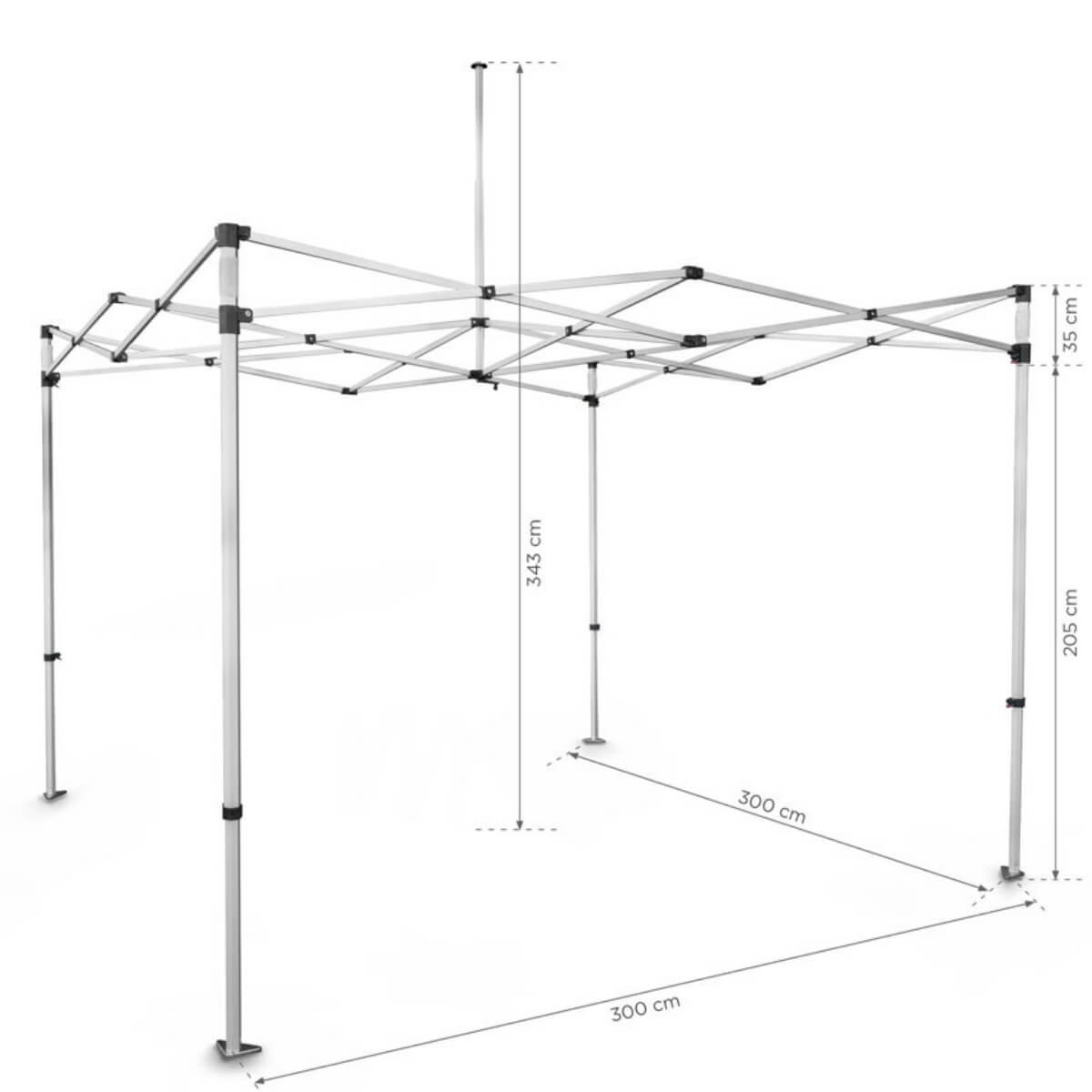 Asigură succesul oricărui eveniment cu acest sistem de cort pliabil de 3x3 metri. Datorită construcției sale inteligente, cadrul poate fi transportat, mutat și montat extrem de ușor, fiind ideal pentru campanii promoționale, târguri, festivaluri sau prezentări în aer liber.