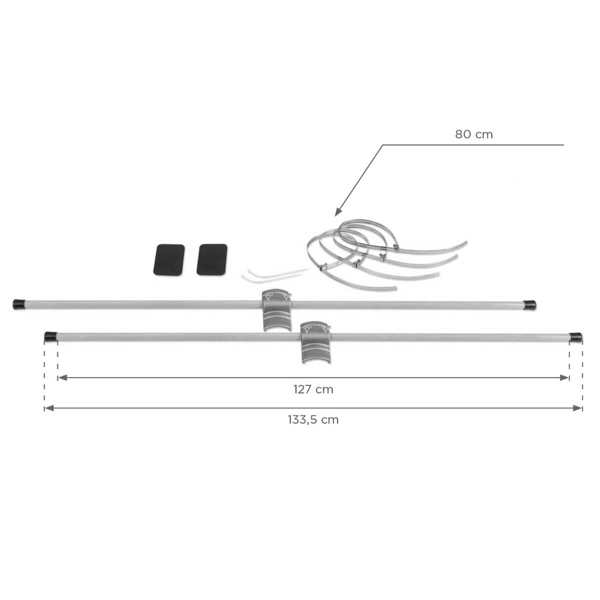 Construit din fibră de sticlă, sistemul oferă o combinație ideală între greutate redusă, rezistență și flexibilitate. Datorită designului dublu, permite montarea a două steaguri pe același stâlp, asigurând o vizibilitate excelentă din ambele direcții.