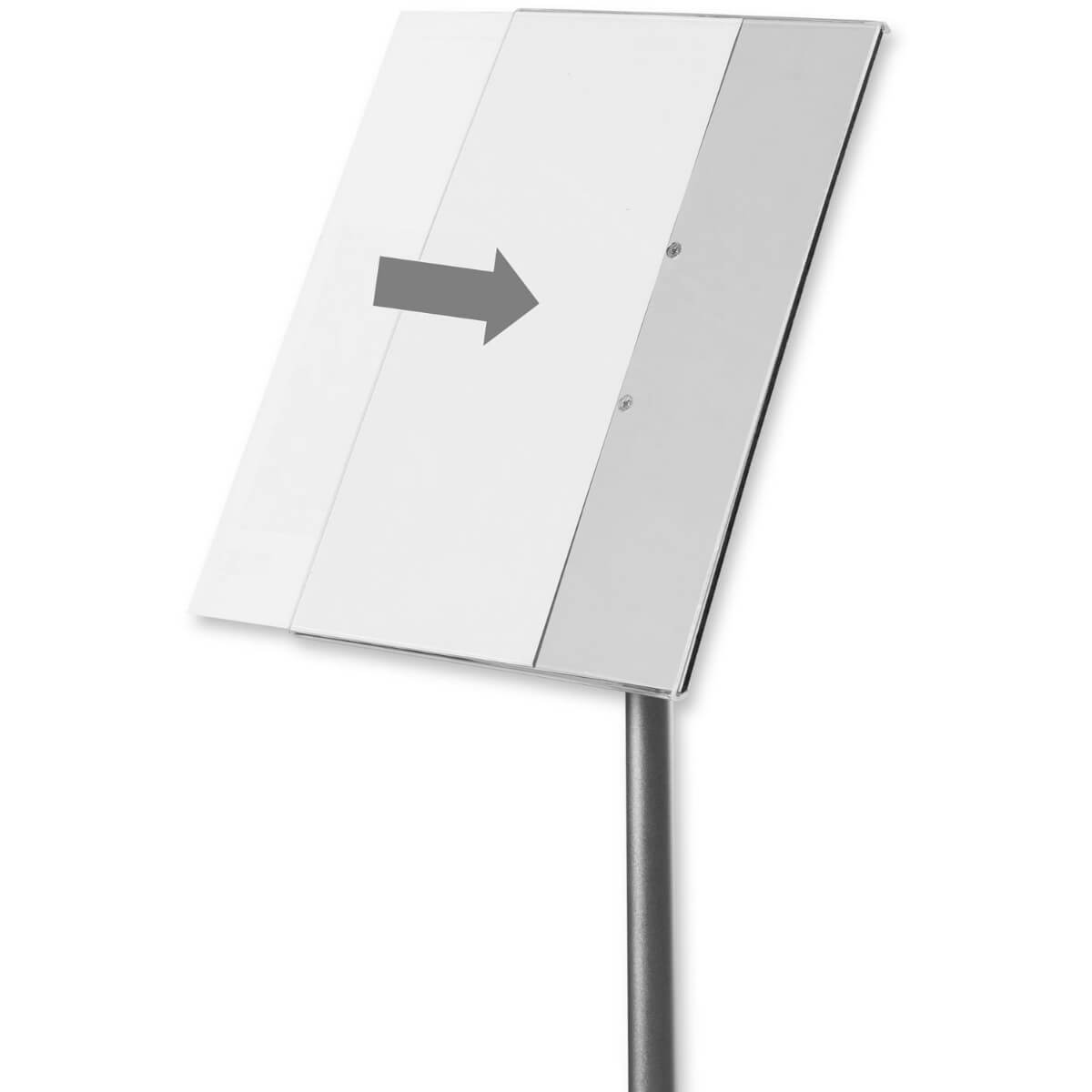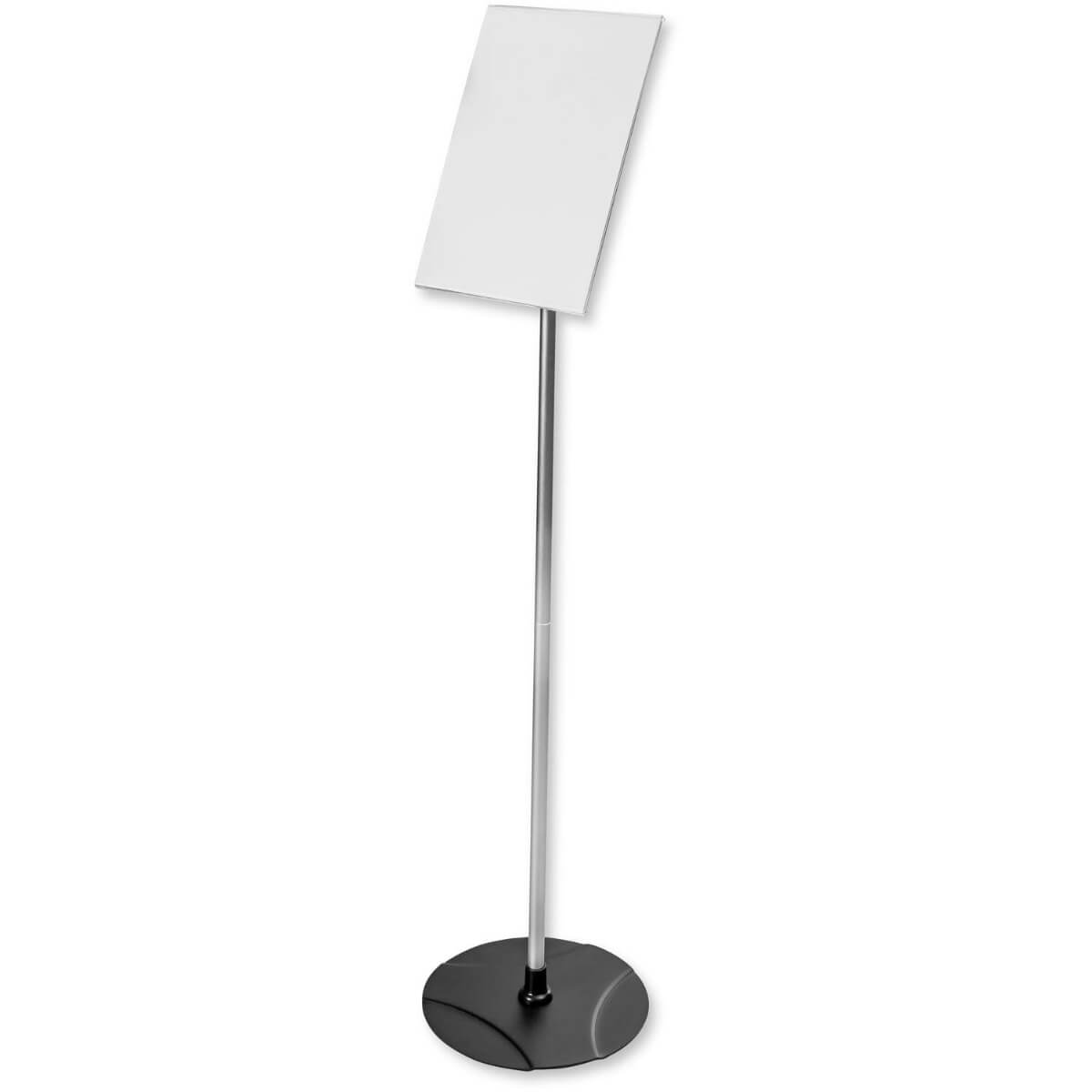 Unghiul reglabil al ramei permite adaptarea vizualizării în funcție de poziția utilizatorului, iar schimbarea graficii se realizează foarte simplu, prin glisarea documentului A4 în interiorul ramei acrilice. În plus, suportul se pliază compact, fiind ușor de transportat și depozitat.