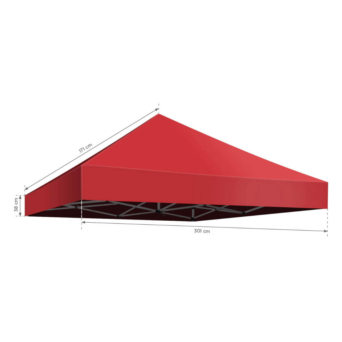 Acoperiș de cort rosu (3x3m), din poliester impermeabil 600D. Rezistent la rupere, nu se șifonează, greutate 3,9 kg. Ideal pentru evenimente outdoor.