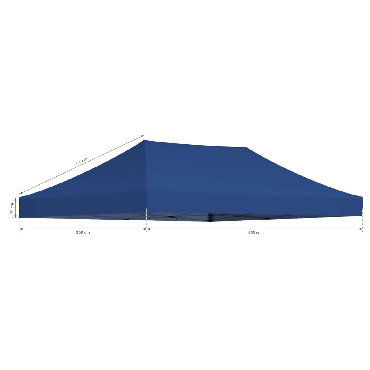 Acoperiș de cort albastru spațios (3x4,5m), din poliester impermeabil 600D. Rezistent la rupere, nu se șifonează, greutate 5,9 kg. Ideal pentru evenimente outdoor!