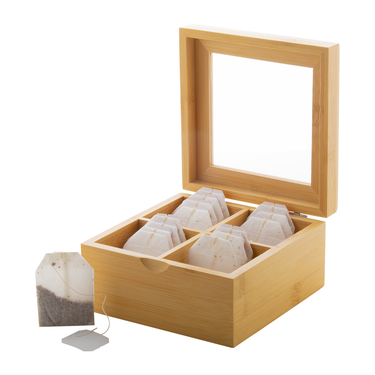 Cutie depozitare ceai din bambus, 4 compartimente | PrintCenter