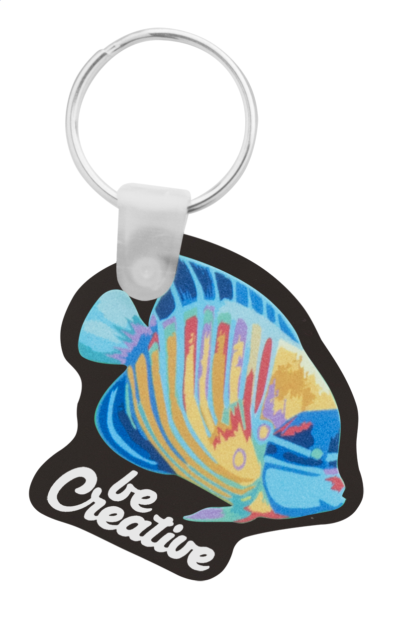 Breloc acrilic cu personalizare policromie. Formă și design unic, dimensiune max de 45 x 45 mm. Prețul include imprimarea cu UV Led o față. Cantitate minimă de comandă: 250 buc.