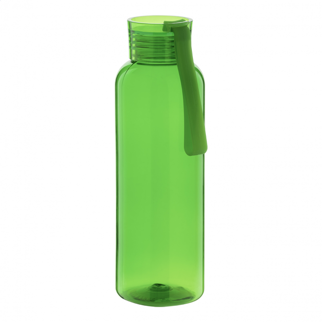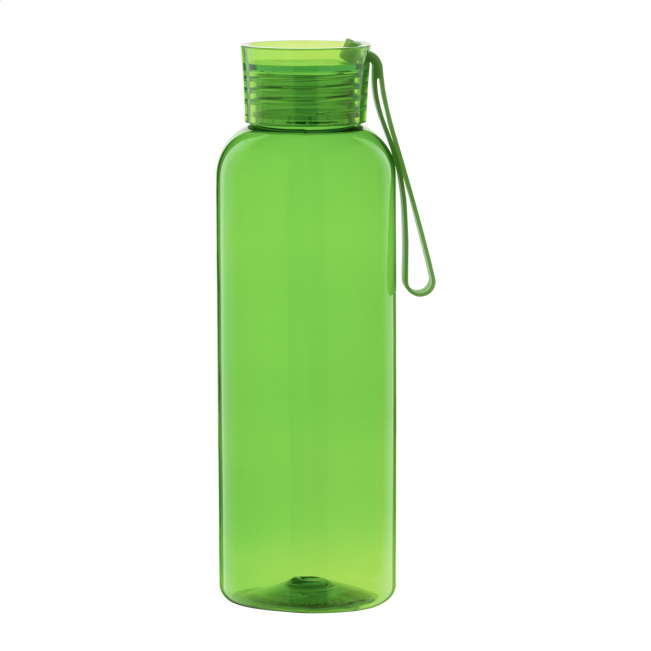 Sticlă din PET reciclat (500 ml) cu capac asortat și curea de transport din silicon. Rezistentă la scurgeri (etanșă), ideală pentru hidratarea zilnică!