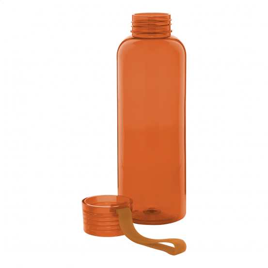 Sticlă din PET reciclat (500 ml) cu capac asortat și curea de transport din silicon. Rezistentă la scurgeri (etanșă), ideală pentru hidratarea zilnică!
