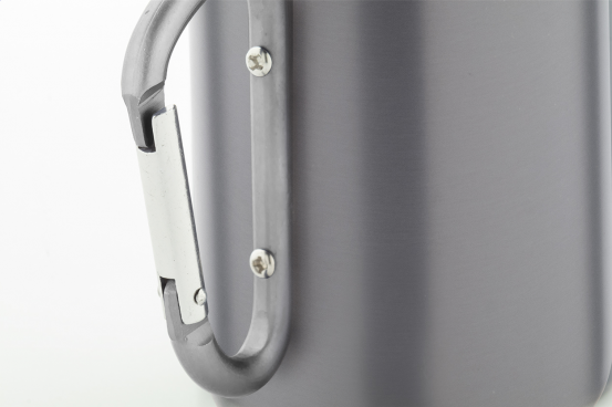 Construcția cu perete dublu și izolație cu aer asigură menținerea temperaturii băuturii tale pentru mai mult timp, în timp ce mânerul ingenios din aluminiu colorat asortat funcționează ca o carabină reală, permițând atașarea facilă de geantă sau rucsac. Fiecare cană este livrată într-o cutie de hârtie kraft, fiind un produs eco-friendly excelent pentru campanii promoționale de impact.