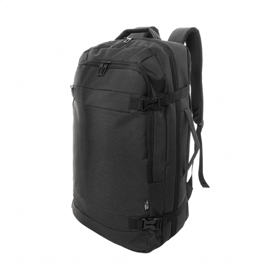 Durabilitate maximă și Sustenabilitate (RPET 600D): Modelul este confecționat dintr-un Poliester 600D RPET, obținut din reciclarea PET-urilor. Densitatea de 600D îi conferă o rezistență mecanică superioară, capabilă să susțină cu ușurință o sarcină maximă de 15 kg. Rucsacul poartă o etichetă distinctă RPET, demonstrând angajamentul ecologic al companiei dumneavoastră.