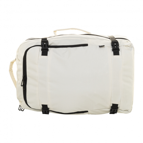 Design Hibrid și Ergonomie pentru Călătorii: Poate fi purtat pe umeri, beneficiind de un spate și bretele puternic căptușite pentru confort termic și mecanic, sau purtat în mână ca o geantă elegantă de tip briefcase. Pentru o mobilitate perfectă în aeroporturi, vine echipat standard cu o curea pentru atașarea pe mânerul căruciorului/trollerului.