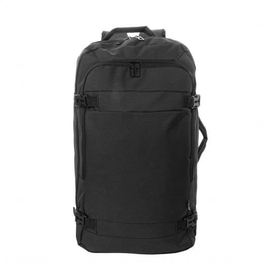 Durabilitate maximă și Sustenabilitate (RPET 600D): Modelul este confecționat dintr-un Poliester 600D RPET, obținut din reciclarea PET-urilor. Densitatea de 600D îi conferă o rezistență mecanică superioară, capabilă să susțină cu ușurință o sarcină maximă de 15 kg. Rucsacul poartă o etichetă distinctă RPET, demonstrând angajamentul ecologic al companiei dumneavoastră.