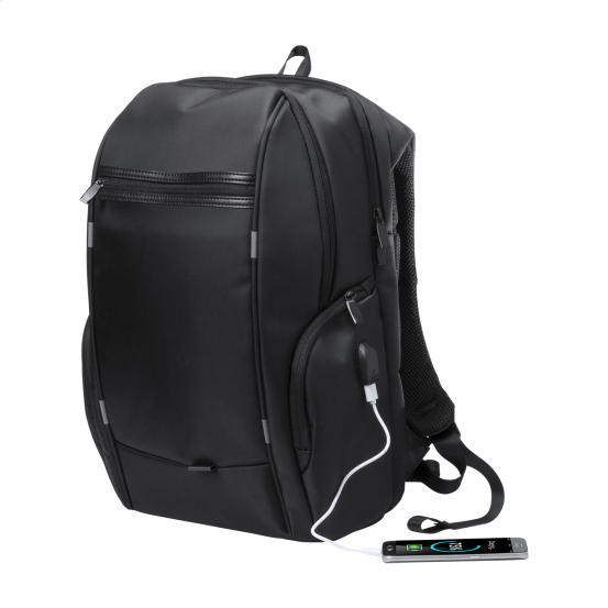 Tehnologie integrată (Port USB): Rucsacul este prevăzut la exterior cu un conector USB. Tot ce trebuie să faci este să conectezi o baterie externă (power bank) la cablul din interiorul rucsacului, iar apoi îți poți încărca telefonul sau tableta direct prin portul exterior, în timp ce te deplasezi, păstrând mâinile libere și dispozitivele în siguranță.