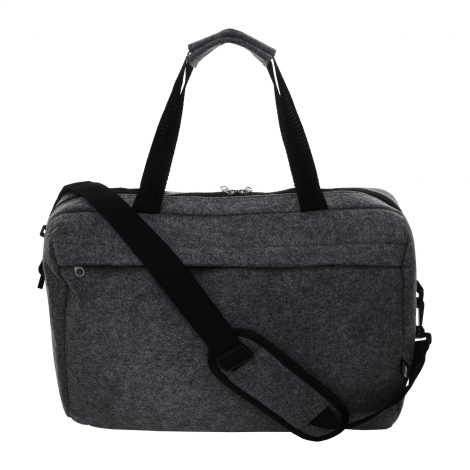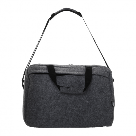 Inovație Eco-Friendly (Fetru din RPET): Materialul genții imită perfect textura caldă și aspectul rafinat al fetrului natural, dar este fabricat 100% din PET reciclat (RPET). Acest angajament ferm față de reducerea deșeurilor din plastic este semnalizat vizibil prin eticheta distinctivă RPET atașată produsului. Este, așadar, o alegere ideală pentru companiile care doresc să își alinieze materialele promoționale cu valorile lor de sustenabilitate.