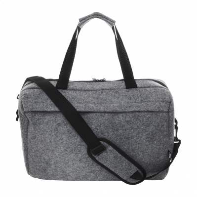 Inovație Eco-Friendly (Fetru din RPET): Materialul genții imită perfect textura caldă și aspectul rafinat al fetrului natural, dar este fabricat 100% din PET reciclat (RPET). Acest angajament ferm față de reducerea deșeurilor din plastic este semnalizat vizibil prin eticheta distinctivă RPET atașată produsului. Este, așadar, o alegere ideală pentru companiile care doresc să își alinieze materialele promoționale cu valorile lor de sustenabilitate.